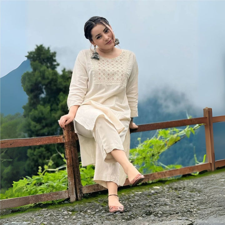 Bring regal charm to your wardrobe with our Heavy Silk Embroidered Yoke Kurta & Pant Set, designed for women who love timeless elegance. Crafted from luxurious heavy silk, this outfit pairs a richly embroidered yoke kurta with matching silk pants, making it a statement co-ord set for festive gatherings, weddings, or evening events.