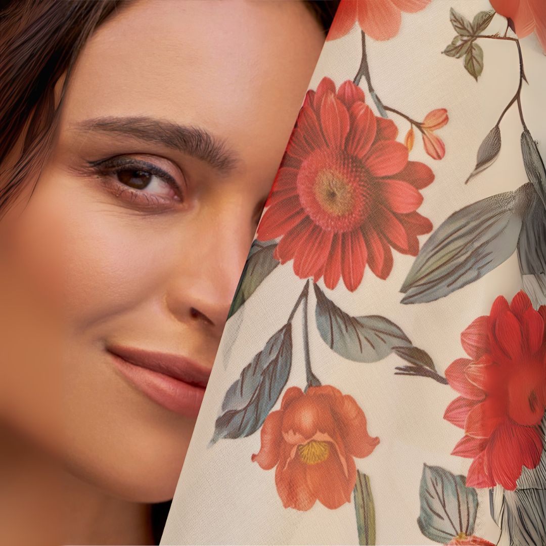 Step into elegance with this exquisite Ivory Bloom three-piece suit set, crafted to add charm and sophistication to your ethnic wardrobe. The kurta and pant are tailored from luxurious Chanderi silk, offering a rich texture and a lightweight feel. Beautiful embroidery on the neckline and hem adds a touch of regality, while the digitally printed floral Chanderi dupatta brings a vibrant contrast to the serene ivory palette.